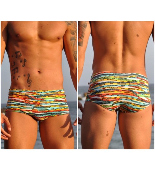 Modelo: Sunga Estampa Senhor do Bonfim tons de azul e verde